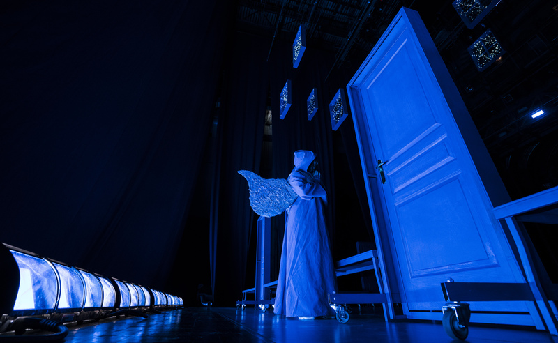 Приказните сини врати от спектакъла „Синята птица” ще преведат зрителите в магията на Народния театър в двойната тазгодишна Нощ на театрите. На 4 и 5 ноември, когато ще се проведе петото издание на театралния маратон, първата ни сцена ще посрещне своите приятели с много изненади, четири хитови спектакъла и общо 10 часа фен обиколки в тайните на историята и сцените на театъра. Специално за събитието сценографът Никола Тороманов-Фичо ще подреди вратите от „Синята птица” във фоайето, така че зрителите буквално да прекрачат прага на магичния свят на театъра с декор от едно от любимите си представления. Нощта на театрите в Народния театър обаче ще започне много по-рано – още в 11:00 часа на 4 ноември, събота, когато стартира поредицата от фен обиколки в сградата. Повече от 250 души вече са се записали за 16-те групи в двата дни, за да открият сами как се случва театърът отблизо и да чуят вълнуващата история на Народния театър. Вече почти няма места в групите, в чиито гидове ще се превъплътят някои от любимите актьори от трупата на театъра – Дарин Ангелов, Деян Ангелов, Теодора Духовникова, Биляна Петринска, Зафир Раджаб, Гергана Змийчарова, Владислава Николова, Сава Драгунчев и други. Звездите на първата ни сцена ще покажат на феновете тайните места и част от нещата, които се случват зад кулисите и по време на работа по спектаклите и, разбира се, ще се снимат и раздават автографи. Ще има и уъркшоп – лаборатория с с режисьора на „Майстори” Петринел Гочев и звездата от представлението Гергана Змийчарова.